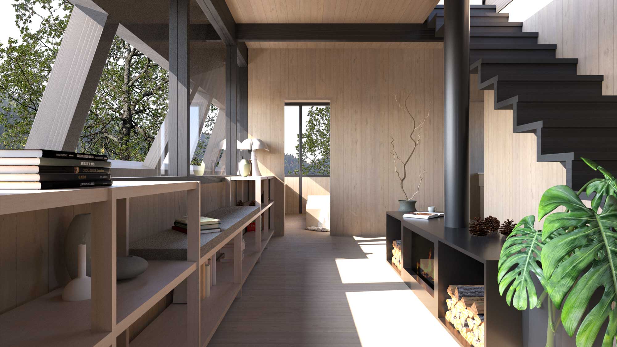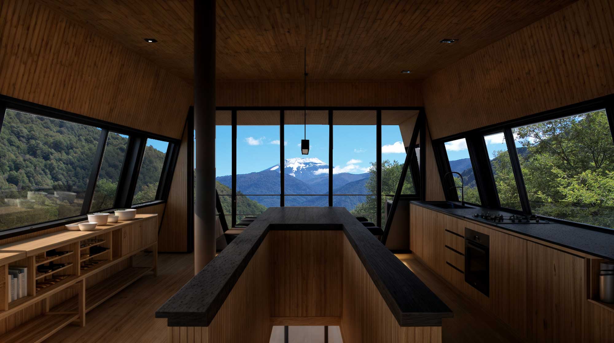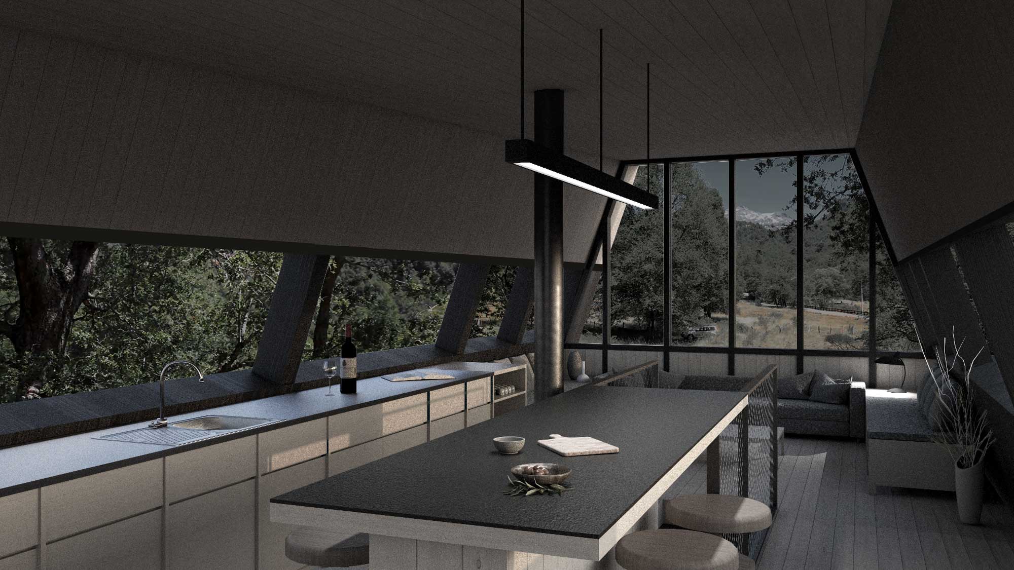 El programa se organiza en las diferentes etapas de producción: almacenamiento, servicios, recepción, producción y venta. El edificio se construye en base a una crujida de 8m x 40m, y fue diseñado como un galpón de madera, relacionado a las construcciones de la zona asociadas a actividades agropecuarias. El uso de madera laminada responde al requisito de adaptabilidad y amplitud del espacio, gracias a esto es posible contar con dimensiones superiores a las comerciales y cubrir así mayores luces. Por último, el revestimiento exterior semitransparente utilizado, aparte de permitir una luminosidad interior homogénea que funciona para el uso diario de taller-exhibición, con iluminación se destaca y se percibe como una marca o hito en el paisaje en el cual está inserto.