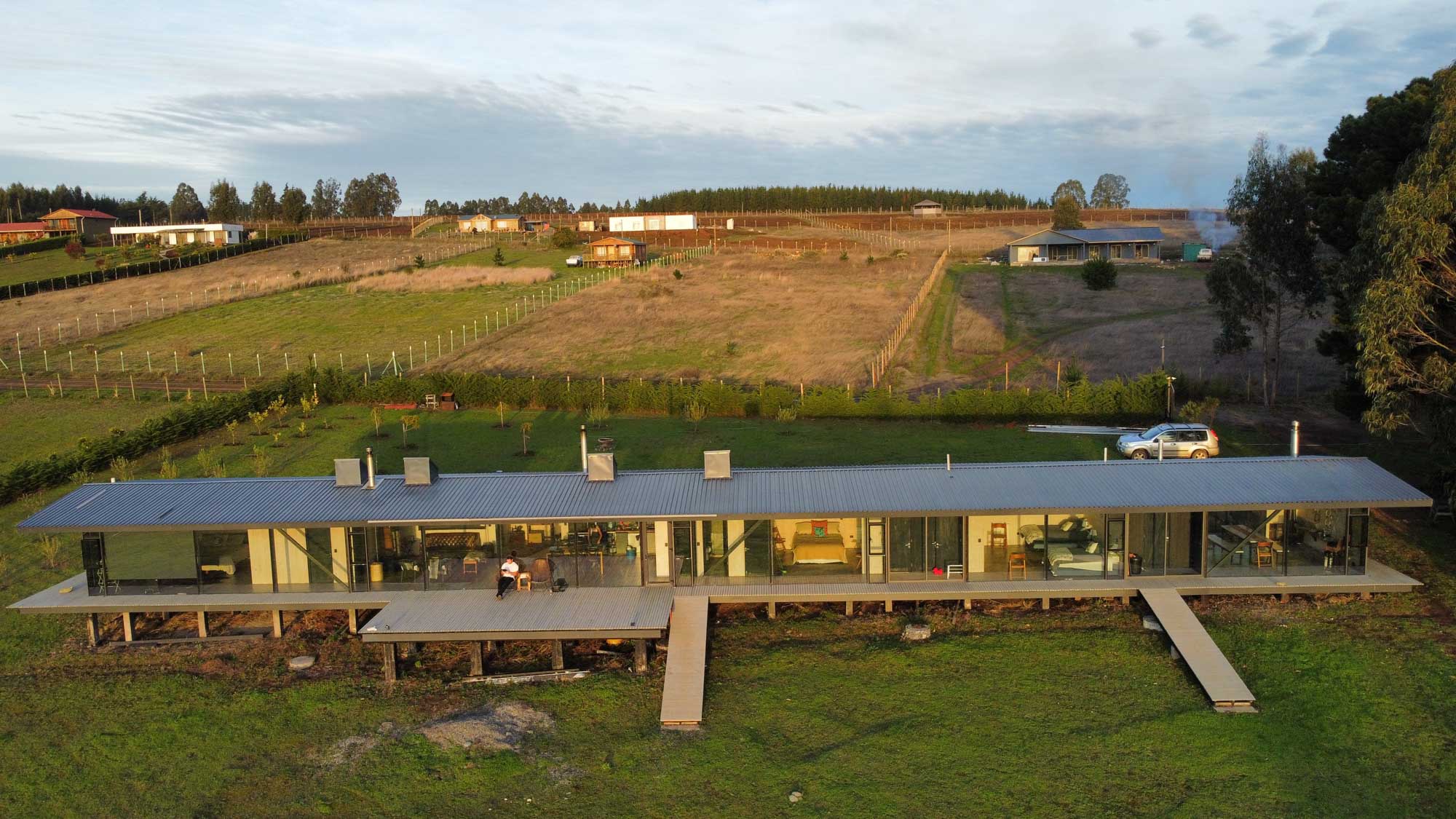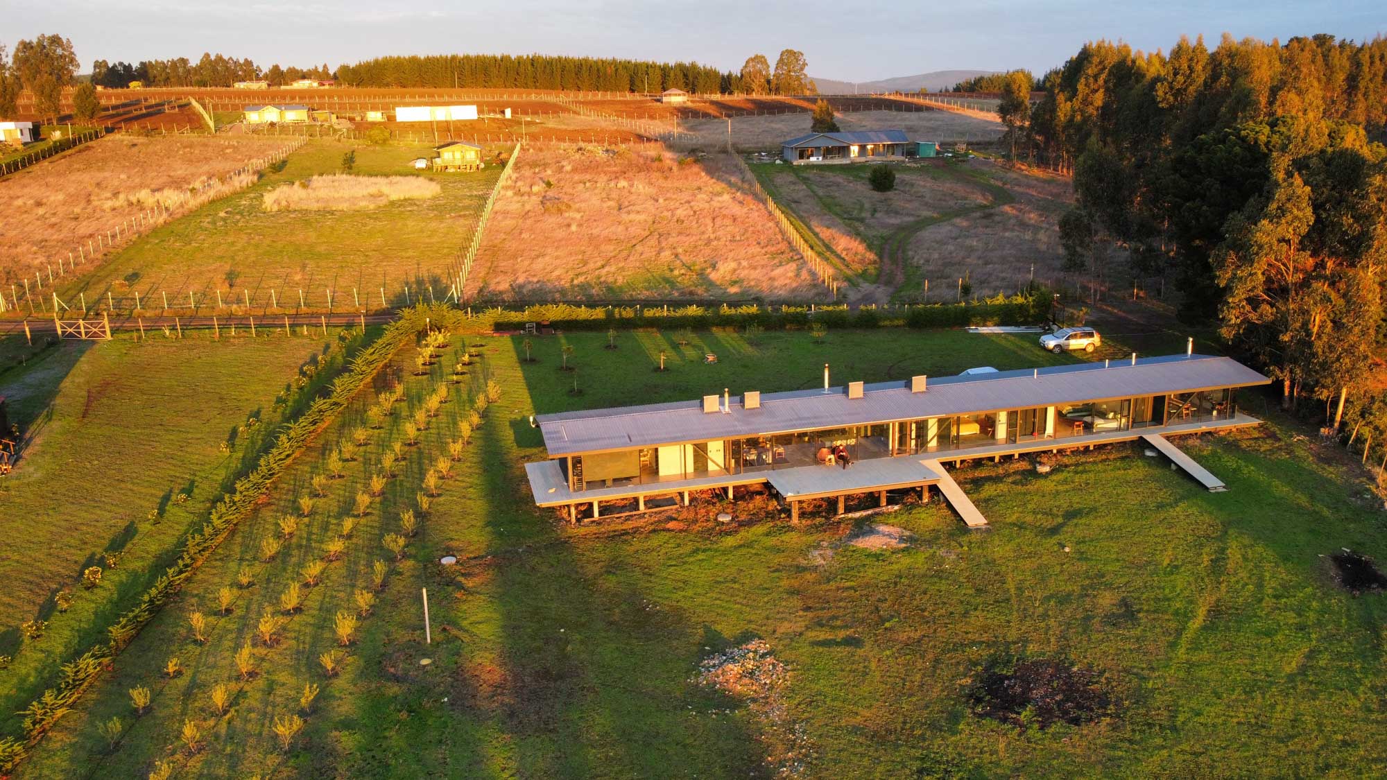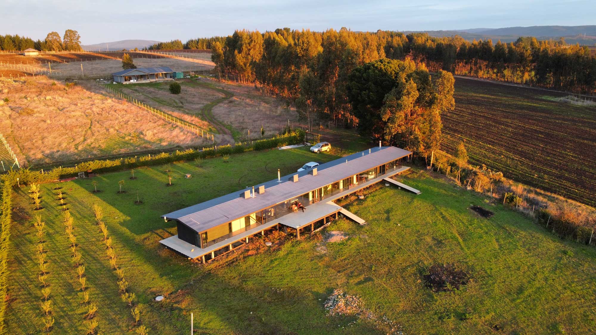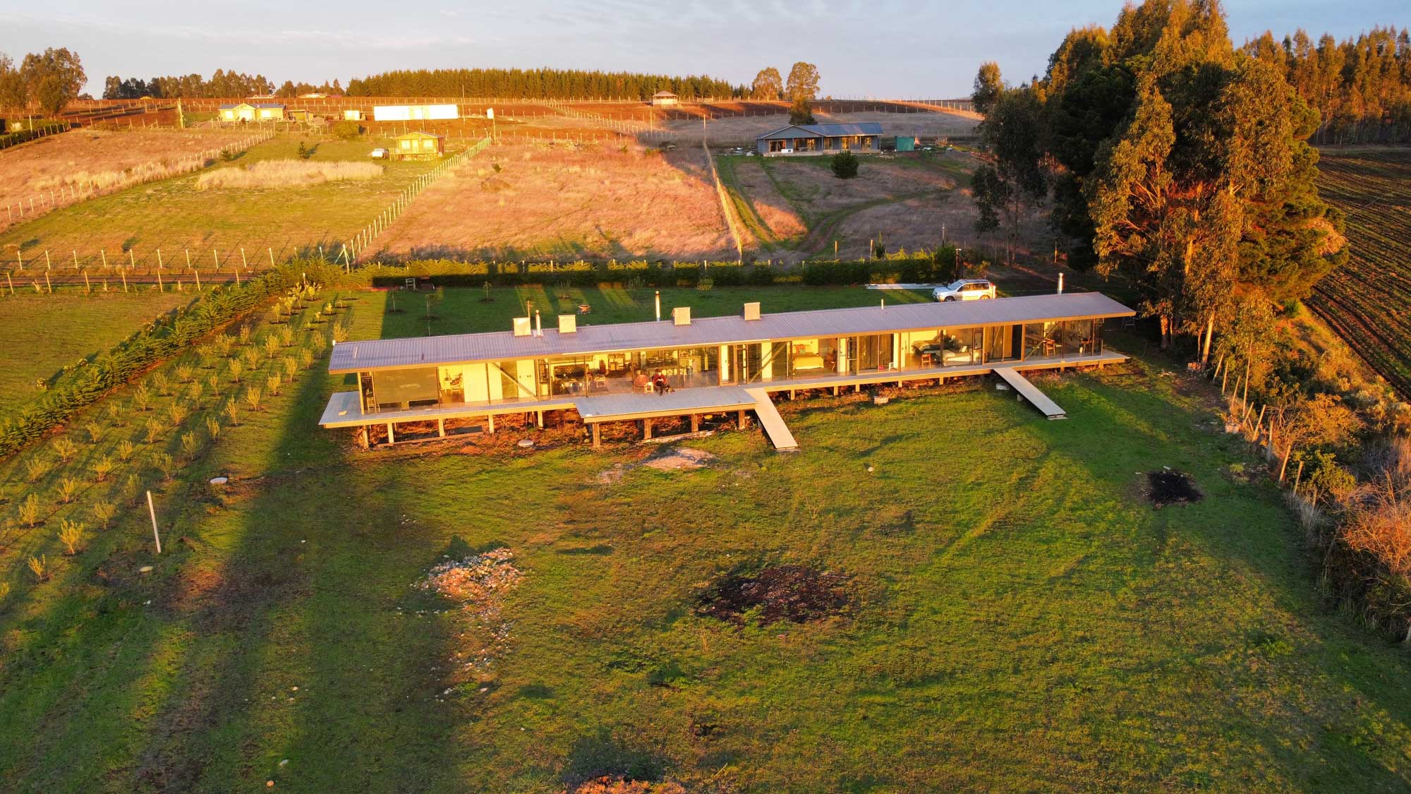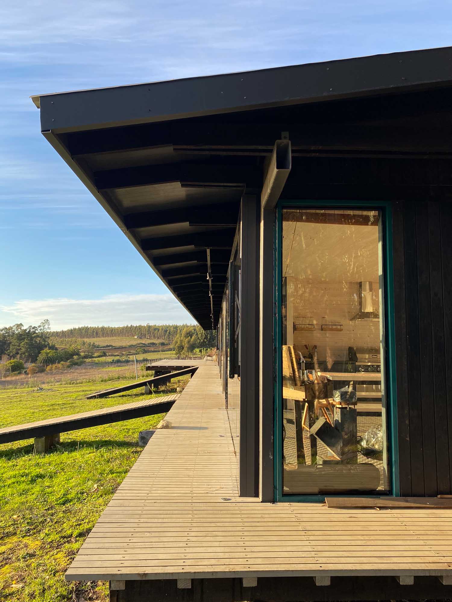 El programa se organiza en las diferentes etapas de producción: almacenamiento, servicios, recepción, producción y venta. El edificio se construye en base a una crujida de 8m x 40m, y fue diseñado como un galpón de madera, relacionado a las construcciones de la zona asociadas a actividades agropecuarias. El uso de madera laminada responde al requisito de adaptabilidad y amplitud del espacio, gracias a esto es posible contar con dimensiones superiores a las comerciales y cubrir así mayores luces. Por último, el revestimiento exterior semitransparente utilizado, aparte de permitir una luminosidad interior homogénea que funciona para el uso diario de taller-exhibición, con iluminación se destaca y se percibe como una marca o hito en el paisaje en el cual está inserto.