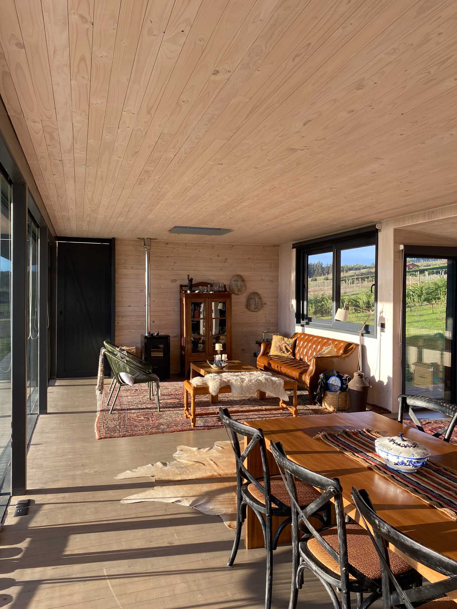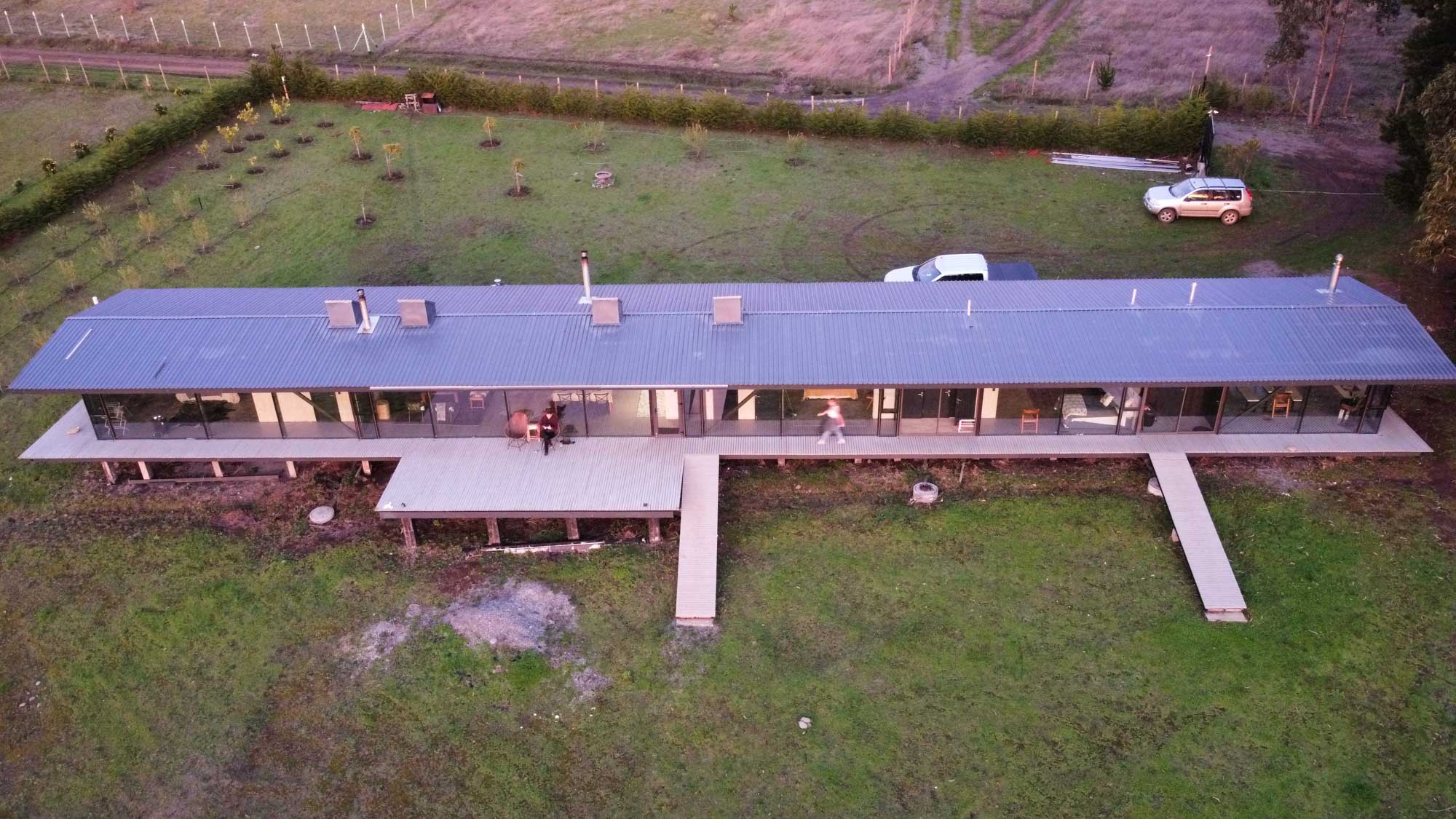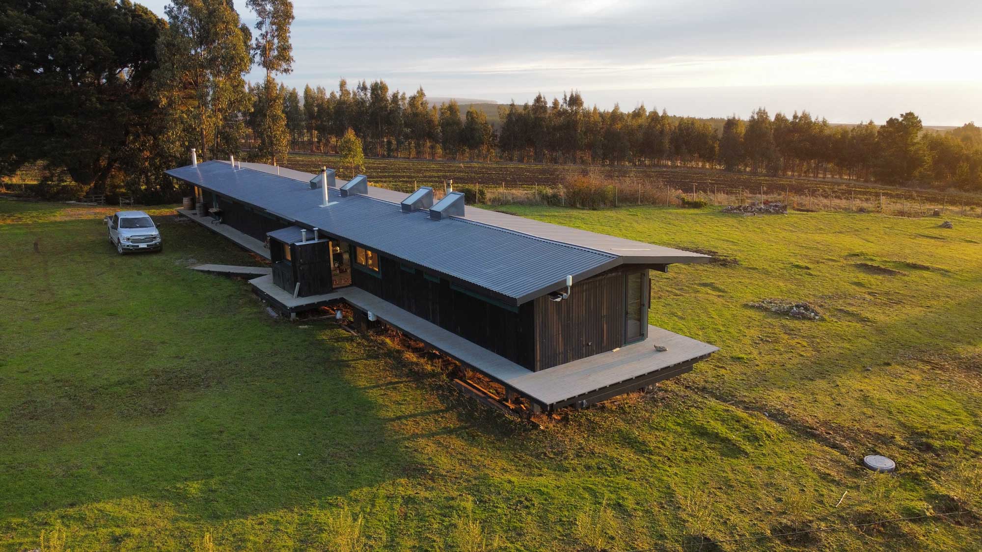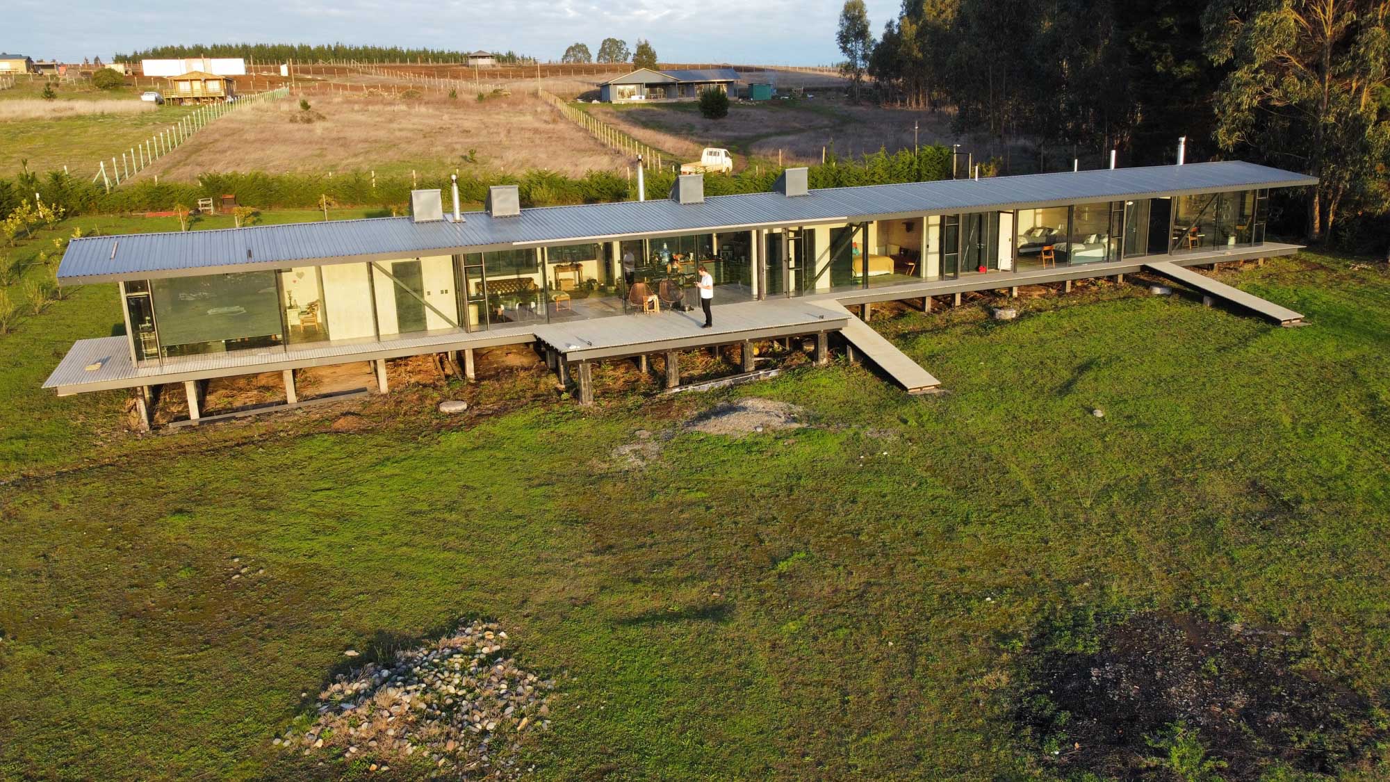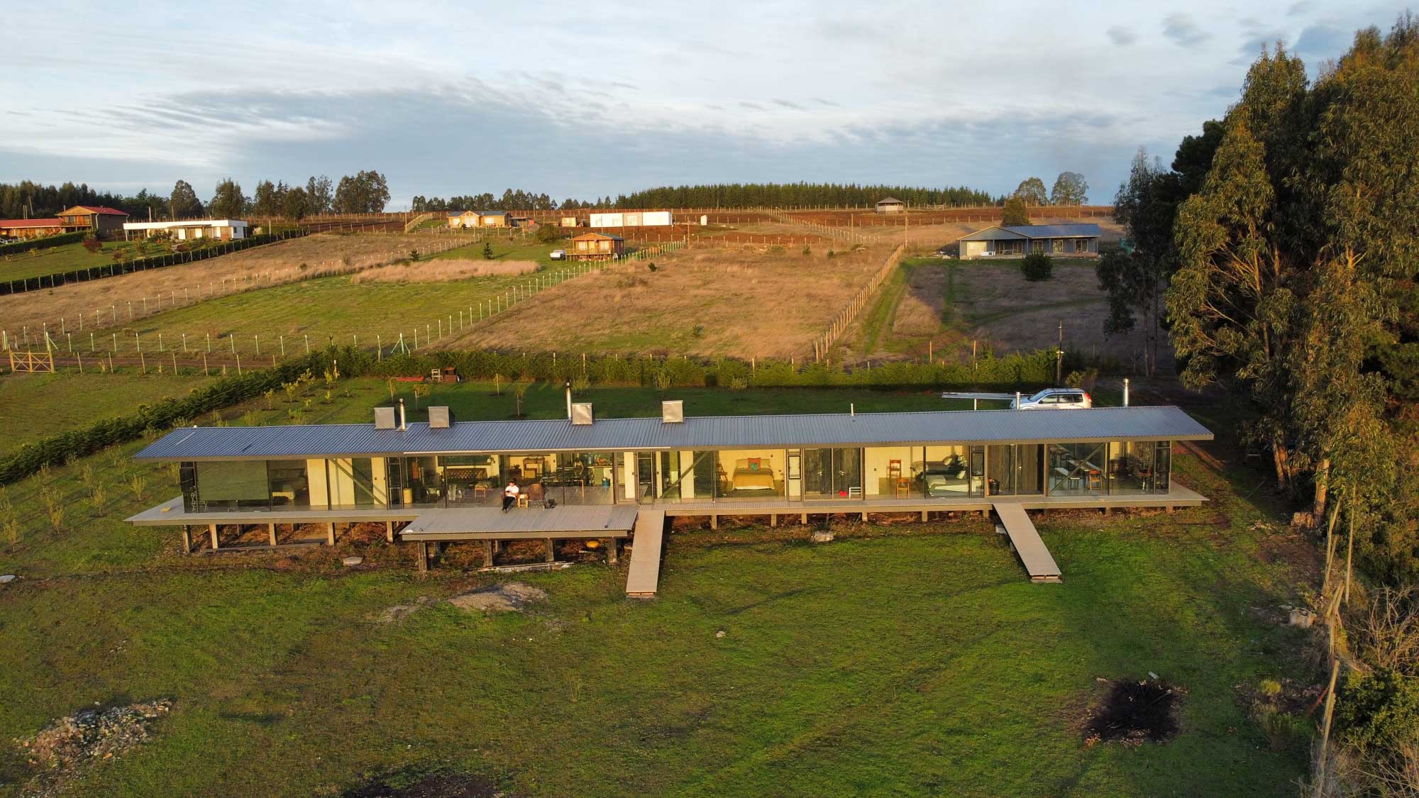 El programa se organiza en las diferentes etapas de producción: almacenamiento, servicios, recepción, producción y venta. El edificio se construye en base a una crujida de 8m x 40m, y fue diseñado como un galpón de madera, relacionado a las construcciones de la zona asociadas a actividades agropecuarias. El uso de madera laminada responde al requisito de adaptabilidad y amplitud del espacio, gracias a esto es posible contar con dimensiones superiores a las comerciales y cubrir así mayores luces. Por último, el revestimiento exterior semitransparente utilizado, aparte de permitir una luminosidad interior homogénea que funciona para el uso diario de taller-exhibición, con iluminación se destaca y se percibe como una marca o hito en el paisaje en el cual está inserto.