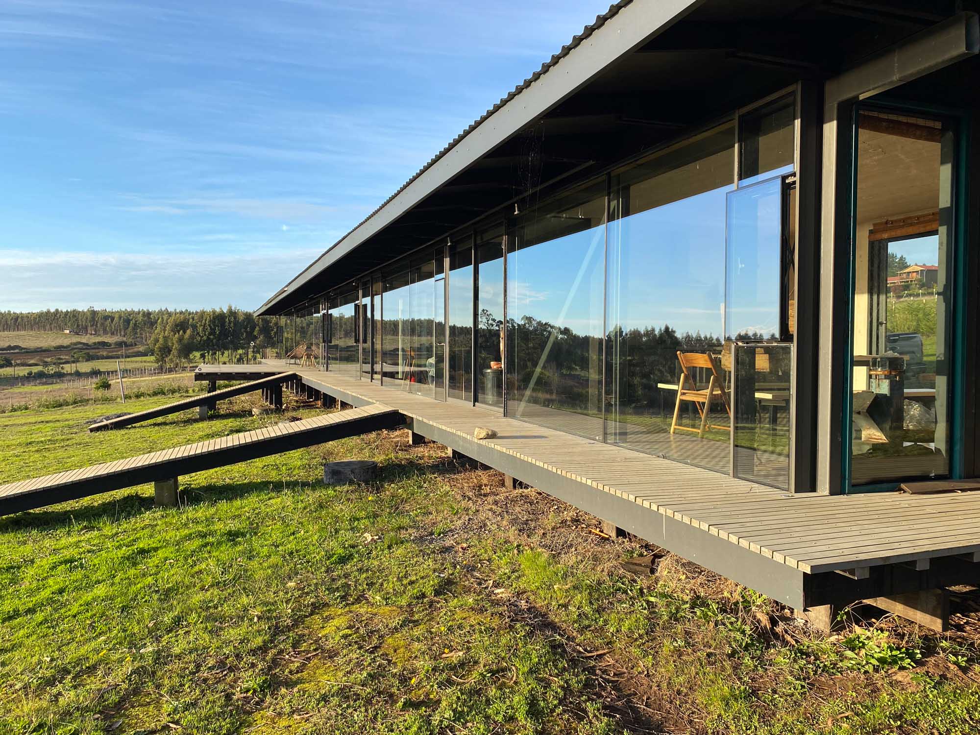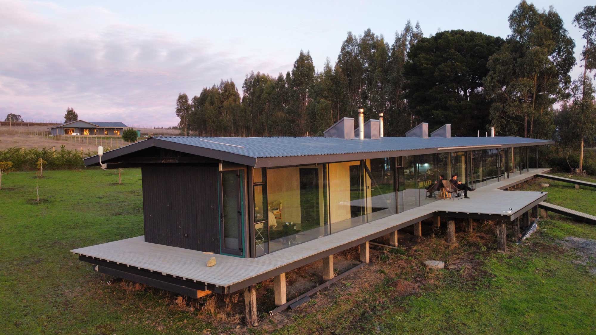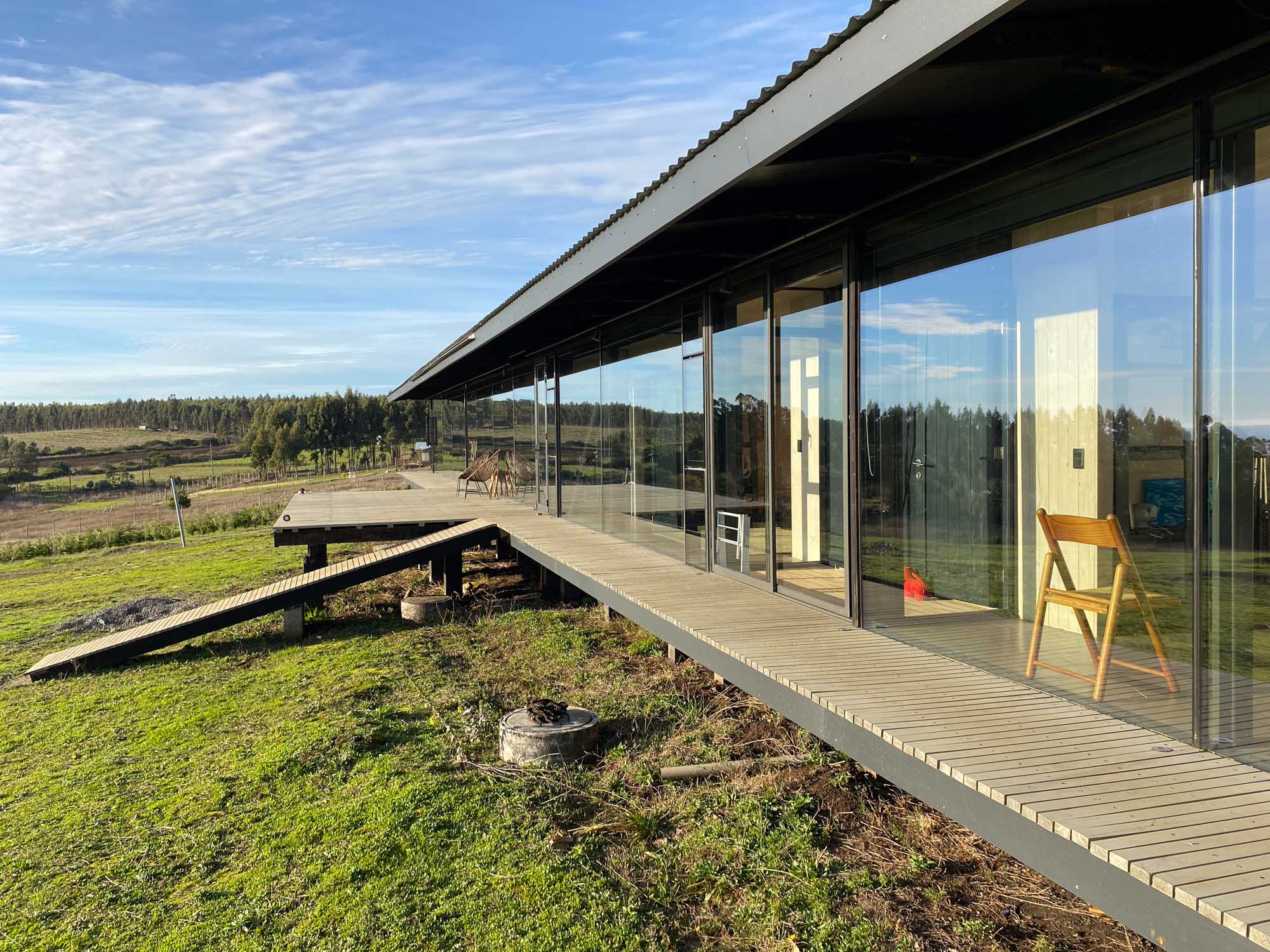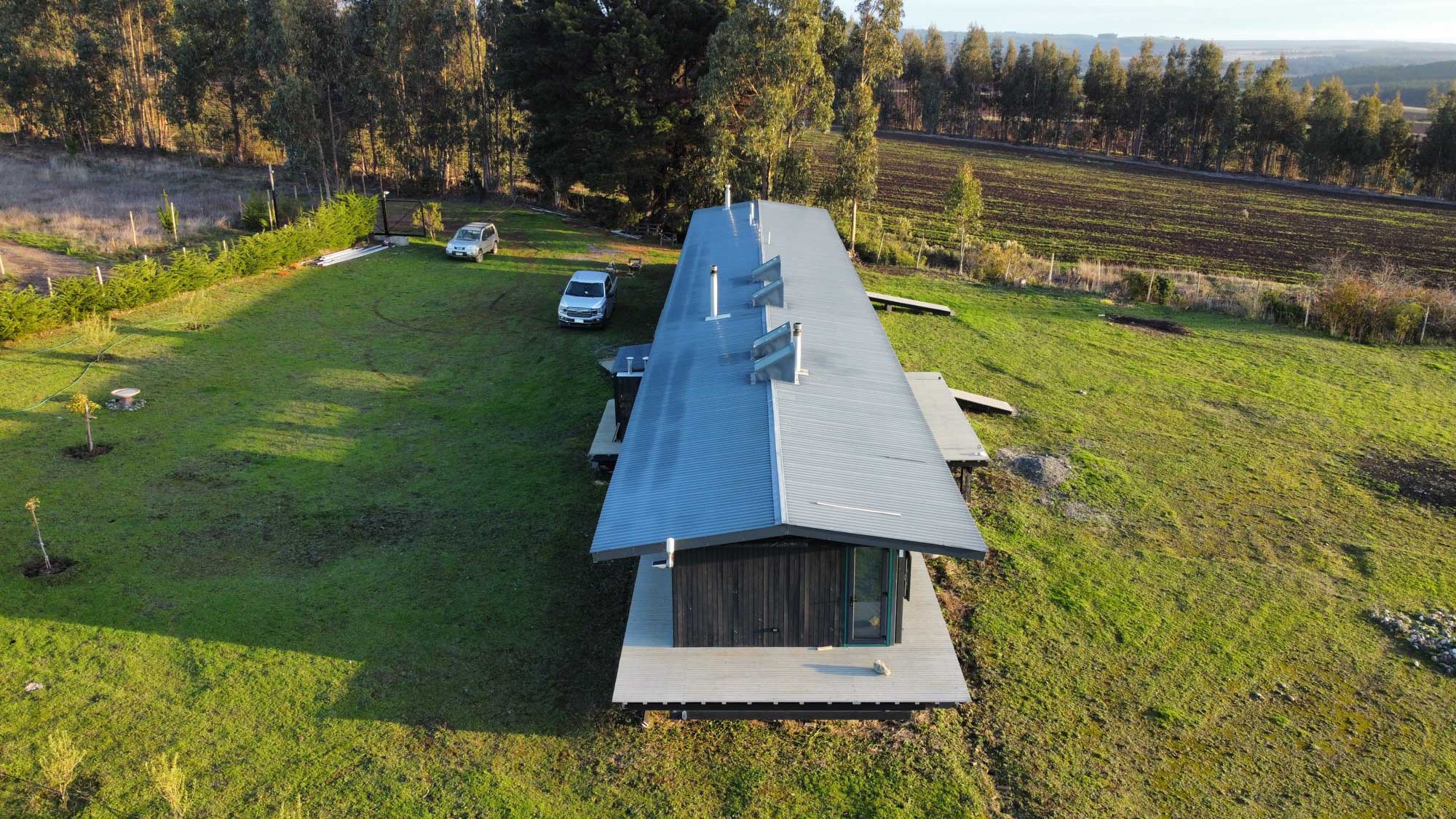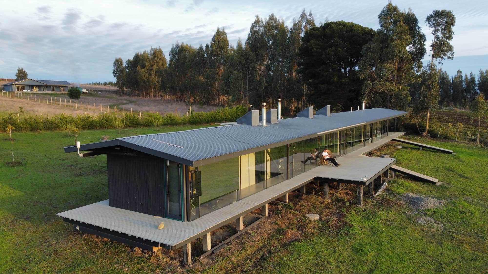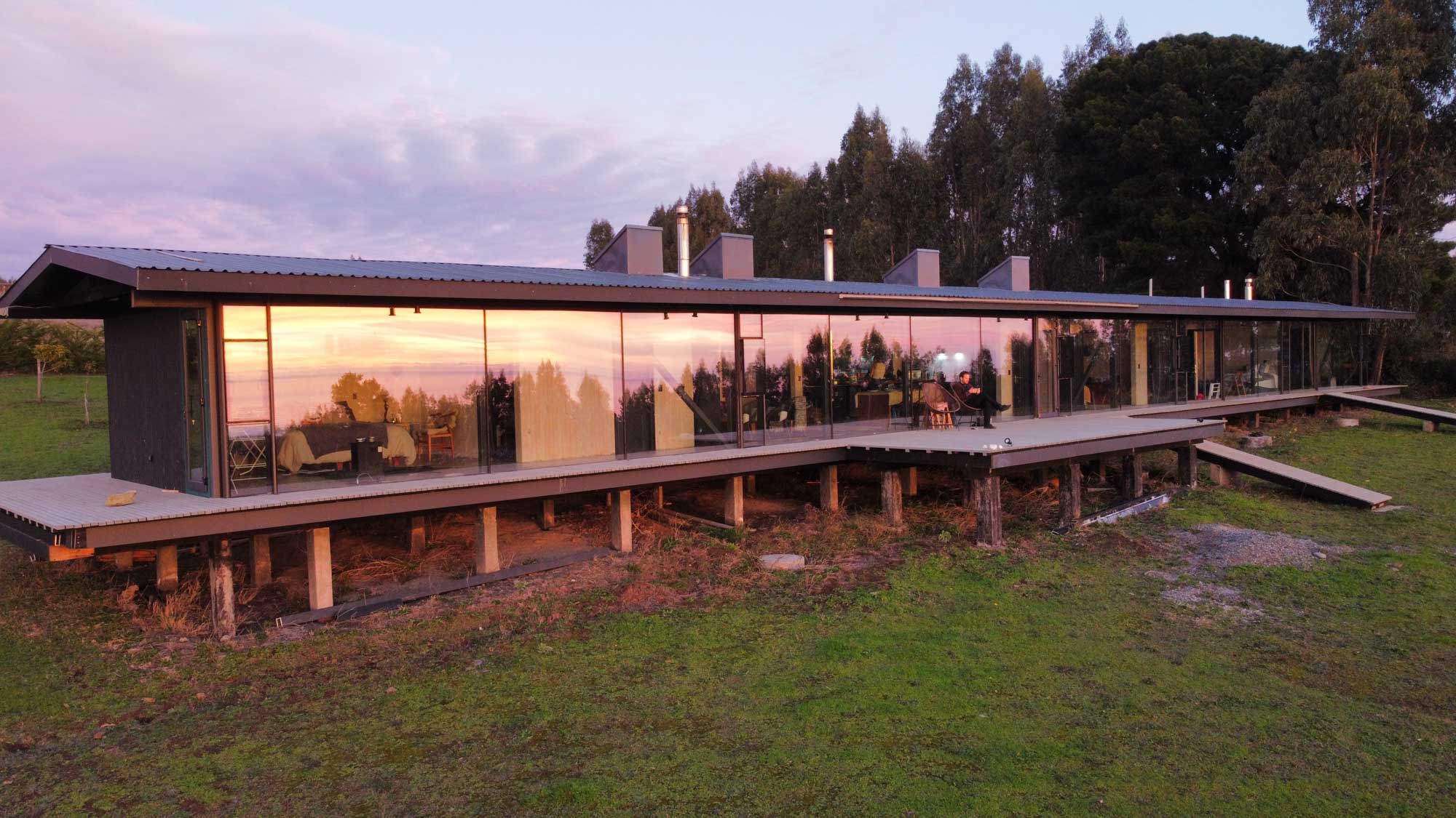 El programa se organiza en las diferentes etapas de producción: almacenamiento, servicios, recepción, producción y venta. El edificio se construye en base a una crujida de 8m x 40m, y fue diseñado como un galpón de madera, relacionado a las construcciones de la zona asociadas a actividades agropecuarias. El uso de madera laminada responde al requisito de adaptabilidad y amplitud del espacio, gracias a esto es posible contar con dimensiones superiores a las comerciales y cubrir así mayores luces. Por último, el revestimiento exterior semitransparente utilizado, aparte de permitir una luminosidad interior homogénea que funciona para el uso diario de taller-exhibición, con iluminación se destaca y se percibe como una marca o hito en el paisaje en el cual está inserto.