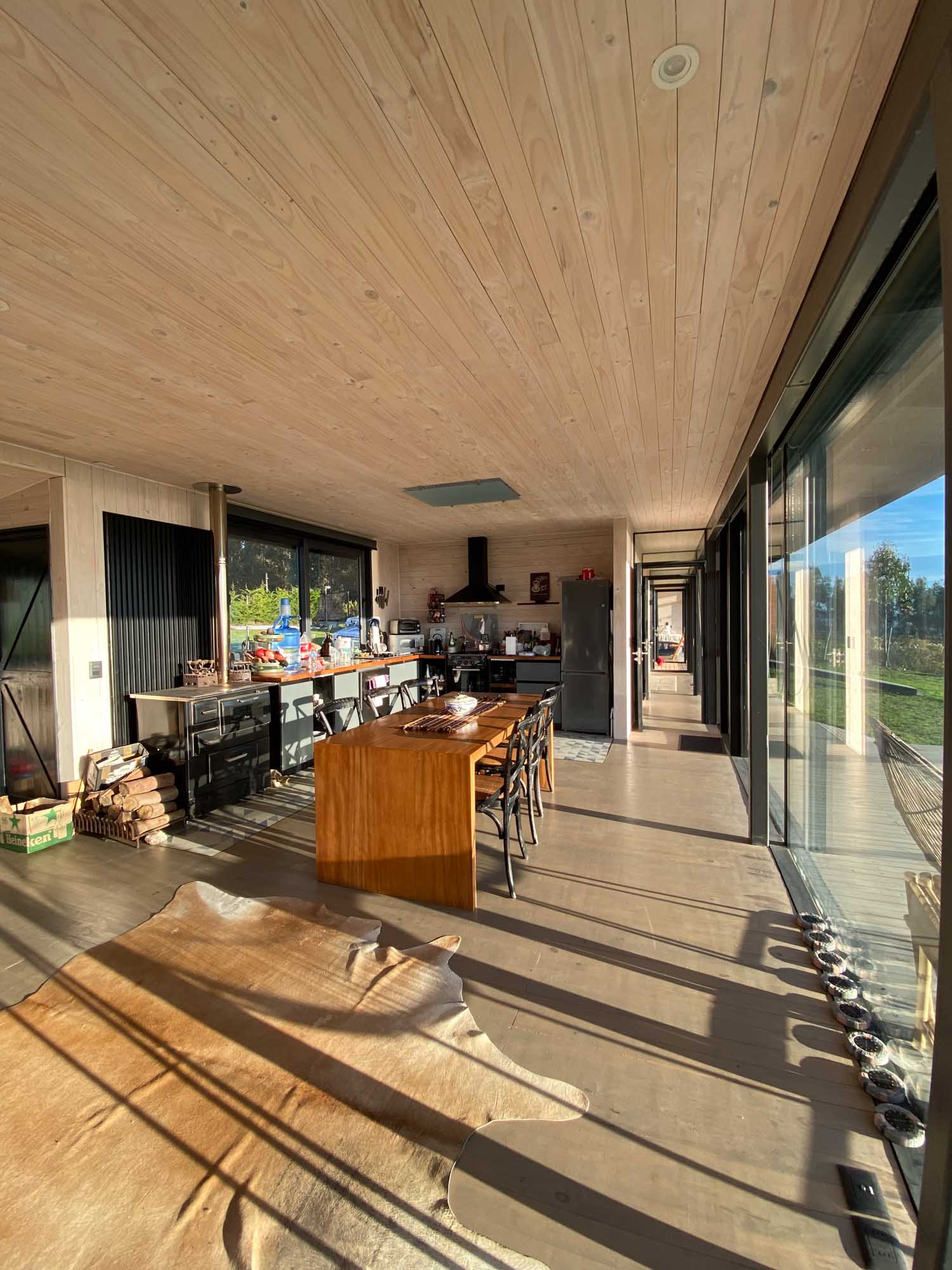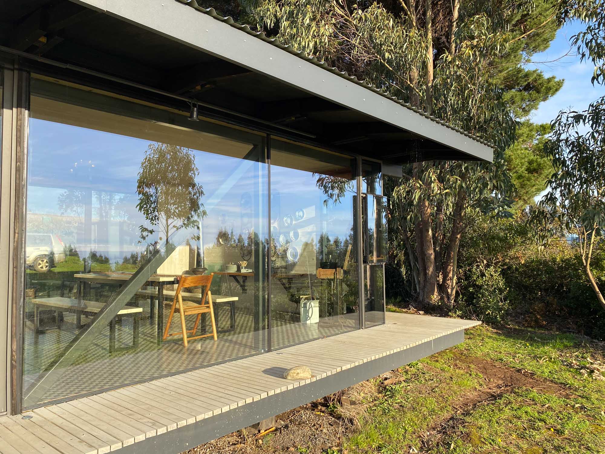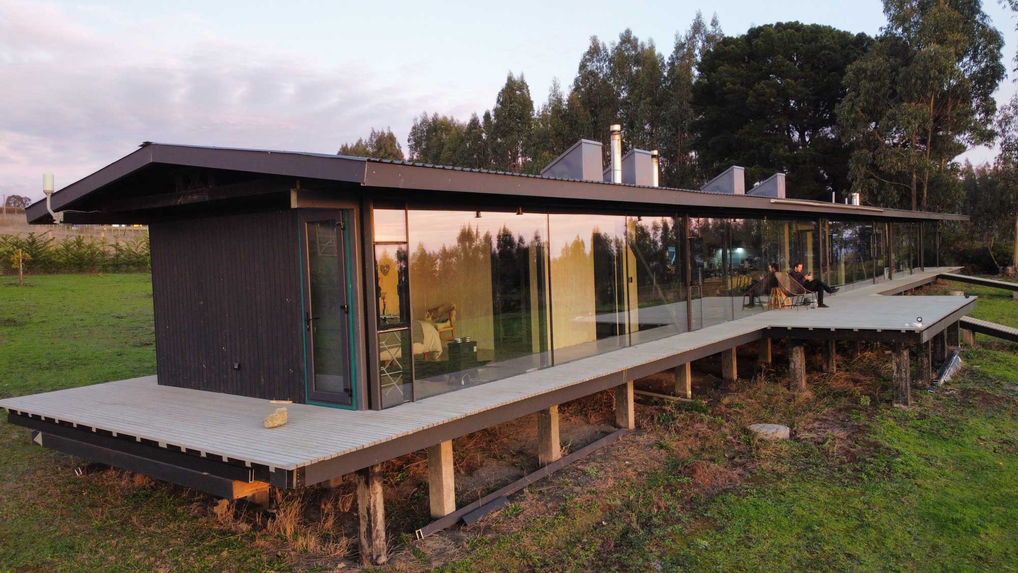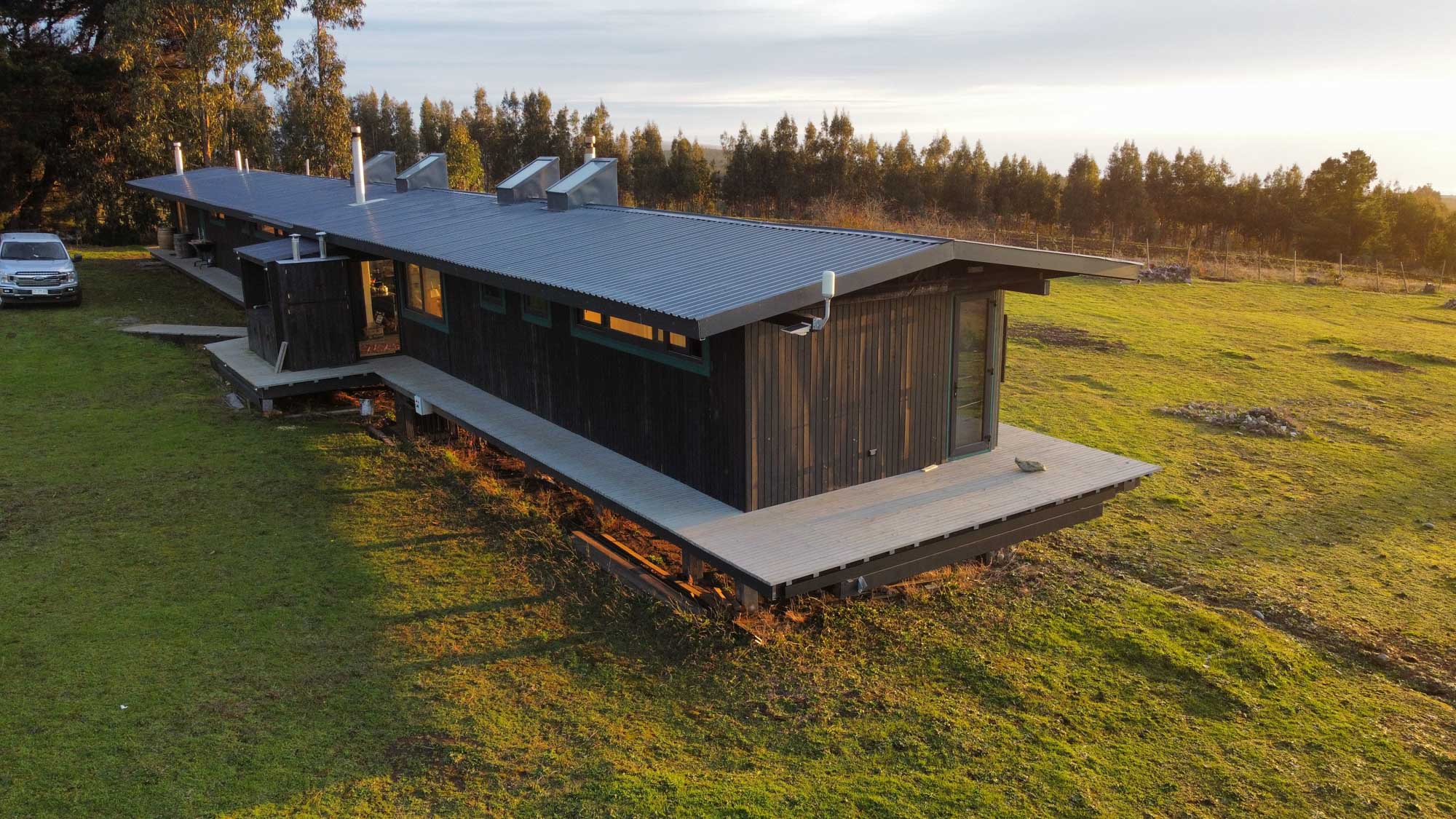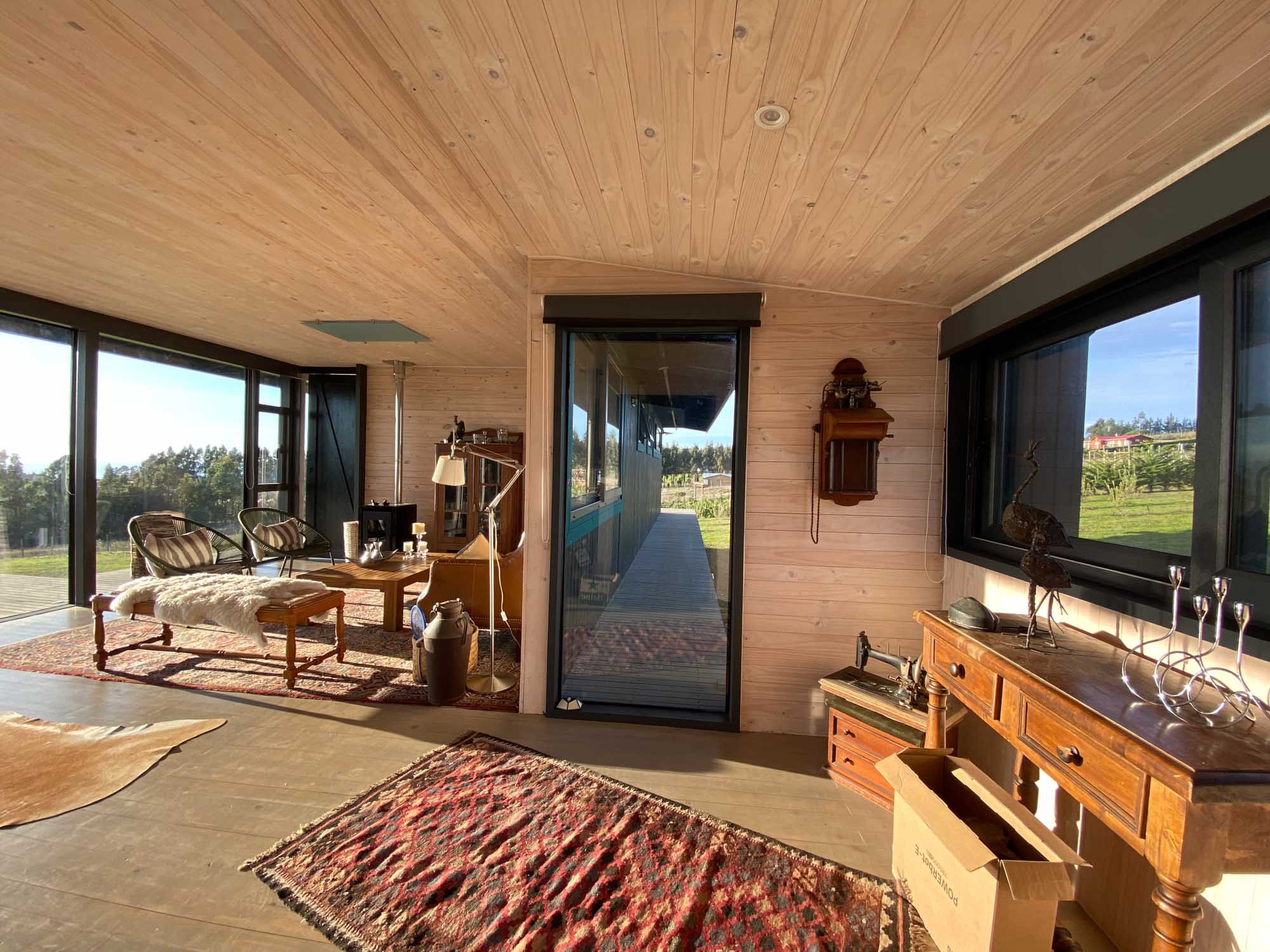 El programa se organiza en las diferentes etapas de producción: almacenamiento, servicios, recepción, producción y venta. El edificio se construye en base a una crujida de 8m x 40m, y fue diseñado como un galpón de madera, relacionado a las construcciones de la zona asociadas a actividades agropecuarias. El uso de madera laminada responde al requisito de adaptabilidad y amplitud del espacio, gracias a esto es posible contar con dimensiones superiores a las comerciales y cubrir así mayores luces. Por último, el revestimiento exterior semitransparente utilizado, aparte de permitir una luminosidad interior homogénea que funciona para el uso diario de taller-exhibición, con iluminación se destaca y se percibe como una marca o hito en el paisaje en el cual está inserto.